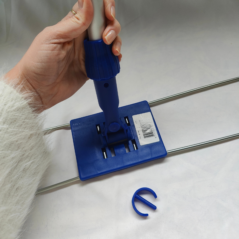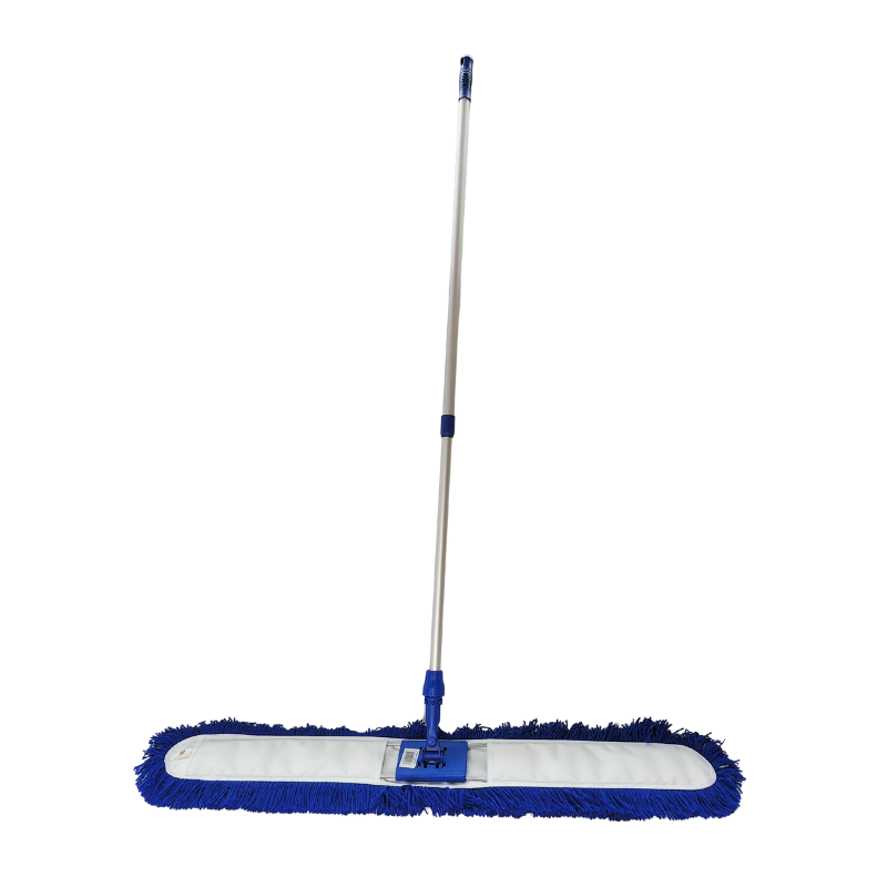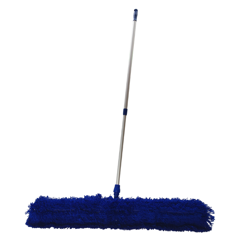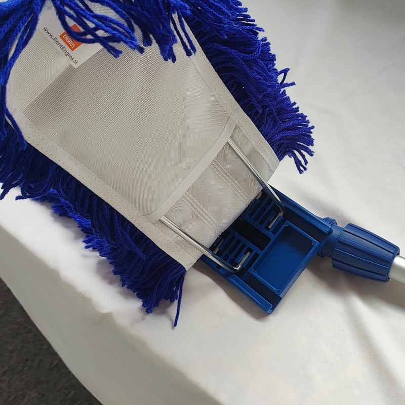 Den brede akrylmoppe dækker store områder hurtigt og effektivt – uden brug af vand eller kemi – og minimerer samtidig støvopvirvling, hvilket er ideelt til fx sportsgulve og lagerhaller.