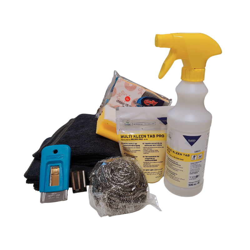 Denne komplette rengøringspakke er skabt til professionelle og kvalitetsbevidste brugere, der ønsker effektiv rengøring af hele køkkenet – uden at gå på kompromis med hygiejnen. Sættet indeholder nøje udvalgte redskaber og kemi til både daglig og grundig rengøring – fra fedtede overflader til kogeplader og gryder.