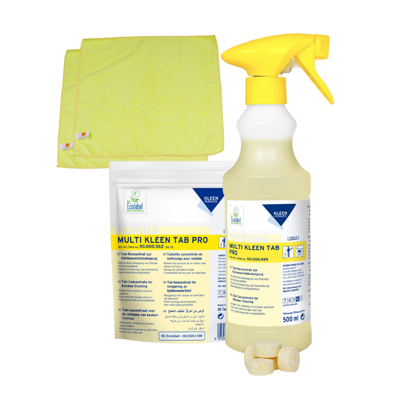 Ecolabel mærket multi-rengøring, 1 sprayflaske med 2 sprayfunktioner og 1 tab.