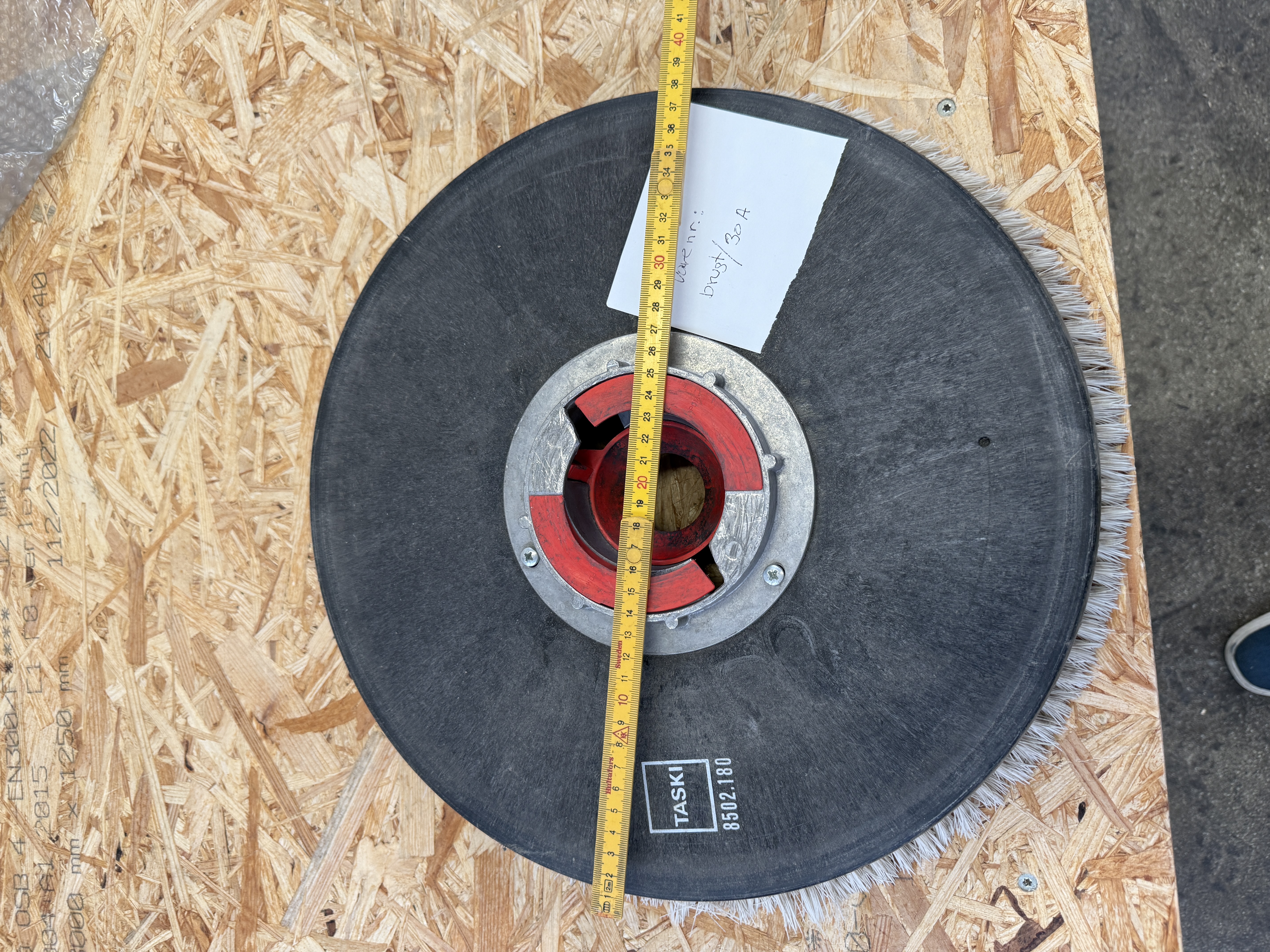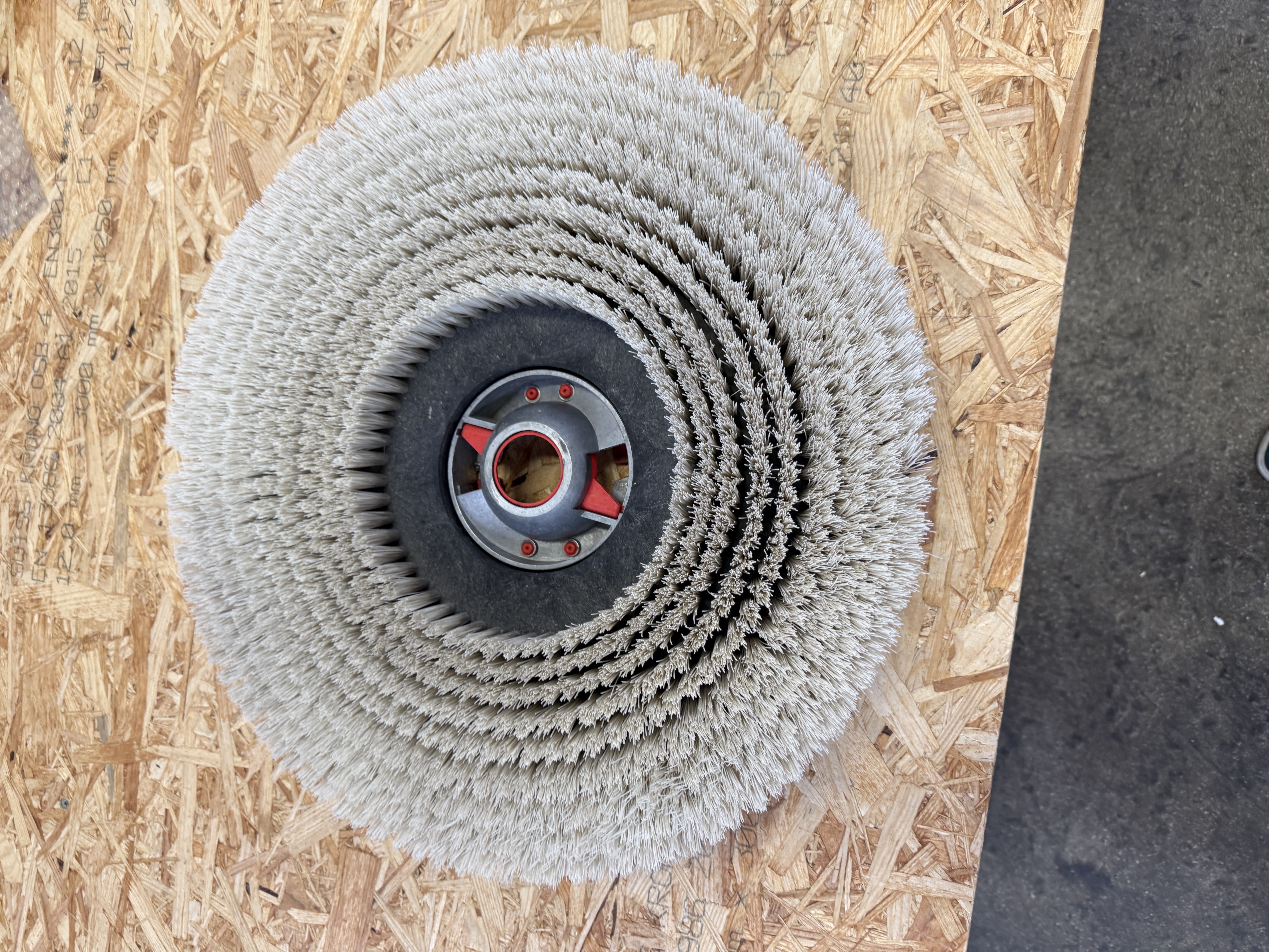 Robust nylonbørste til skure- og gulvvaskemaskiner – i brugt, men fuldt anvendelig stand. Med en diameter på 39 cm (15") er børsten velegnet til mindre og mellemstore gulvvaskemaskiner. Nylonfibrene sikrer effektiv fjernelse af snavs og belægninger på hårde gulvoverflader som klinker, beton og linoleum, uden at skade materialet.