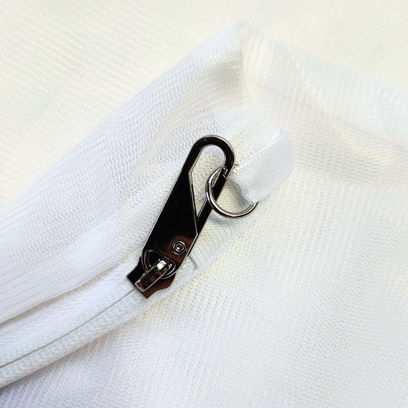 Det beskytter både tekstiler og vaskemaskinens indre mod slid, sammenfiltring og skader. Den robuste lynlås er udstyret med en beskyttelsesflap, som sikrer, at lynlåsen ikke rives op under vask eller skader andet vasketøj.