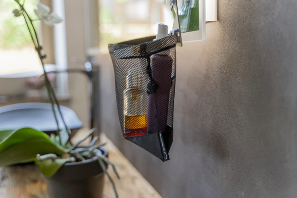 Du kan kombinere den med forskellige montageløsninger – fx universal‑krog, sugekop eller klæbeophæng – således at posen kan hænges på væg, skab, vogn eller endda direkte i vådrum såsom bruseområder. Materialet er robust, åndbart og dermed egnet også til fugtige miljøer. Det betyder, at du ikke kun får orden, men også holdbarhed og fleksibilitet i én løsning.