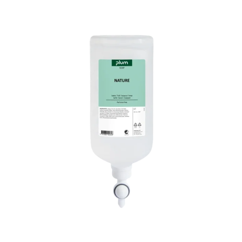 Plum Nature er en mild, parfumefri og farveløs cremesæbe udviklet til daglig håndvask, hvor der stilles høje krav til både hygiejne, hudvenlighed og miljøhensyn. Den er særligt velegnet til miljøer med hyppig håndvask, såsom sundhedssektoren, kontorer, hoteller og offentlige faciliteter.