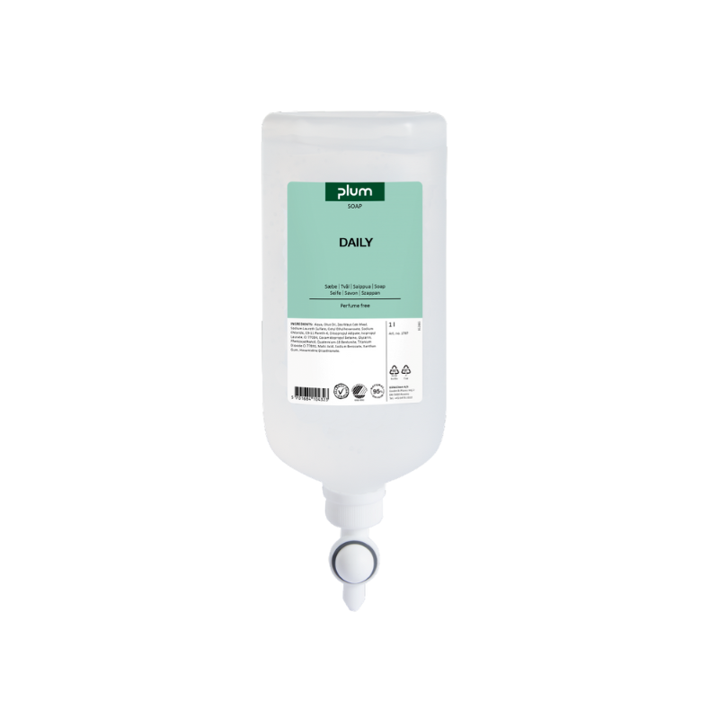 Plum Daily er en parfumefri og farveløs cremesæbe udviklet til daglig håndvask, hvor både effektiv hygiejne og høj hudtolerance er afgørende. Den milde formulering gør sæben særligt velegnet til miljøer med hyppig håndvask, såsom sundhedssektoren, kontorer, hoteller og offentlige faciliteter.