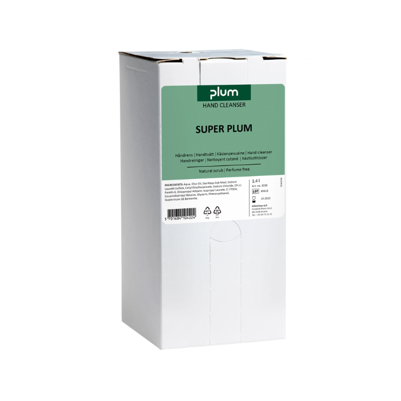 Super Plum er en kraftig håndrens uden parfume, baseret på vegetabilske olier og naturligt slibemiddel af majskolbegranulat. Produktet er udviklet til effektiv fjernelse af lettere oliesnavs, fedt, trykfarve (vandbaseret) og andet genstridigt snavs – uden brug af opløsningsmidler.