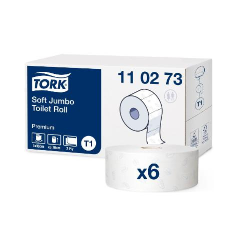 Tork Premium Jumbo T1 Soft er et ekstra blødt og kraftigt 2-lags toiletpapir, udviklet til toiletter med høj trafik, hvor komfort og kapacitet er afgørende. Hver rulle indeholder hele 360 meter papir, hvilket giver færre skift og høj driftssikkerhed – ideelt til større virksomheder, institutioner og offentlige faciliteter.