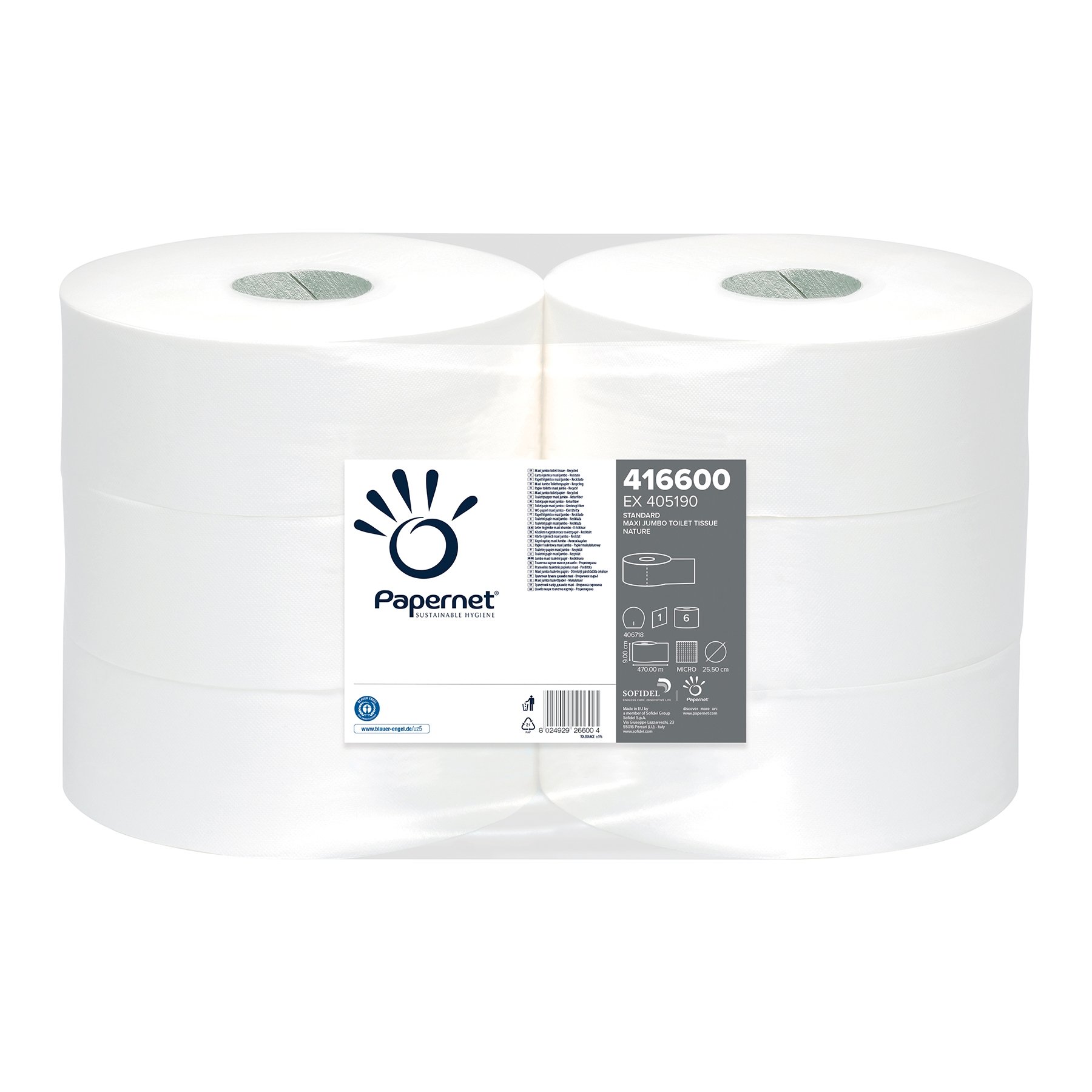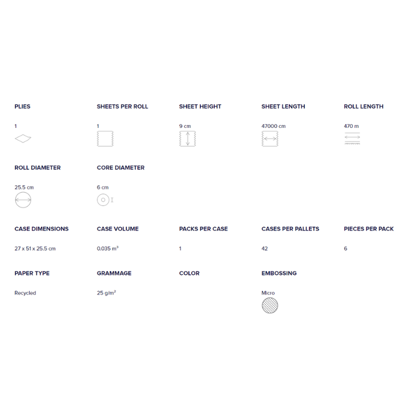 160 meter, 12 ruller/krt. 180 rulle-diameter, 60 kerne-diameter, 97 mm bred. Ca. 508 ark.