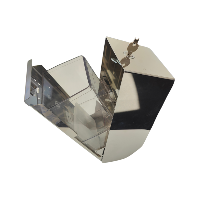 Denne stål dispenser til refill kombinerer funktionalitet og æstetik i én robust løsning. Den er fremstillet i rustfrit stål med en højglanspoleret overflade, som giver et elegant og professionelt udtryk – ideel til både toiletter, køkkener og kliniske miljøer. Dispenseren rummer op til 1 liter sæbe eller hånddesinfektion og betjenes let via trykknap. Den gennemsigtige indvendige beholder gør det nemt at holde øje med fyldningsniveauet, og det medfølgende vægbeslag sikrer nem og stabil montering. Alt til ophæng medfølger, og låsemekanisme med nøgle beskytter mod uautoriseret adgang.