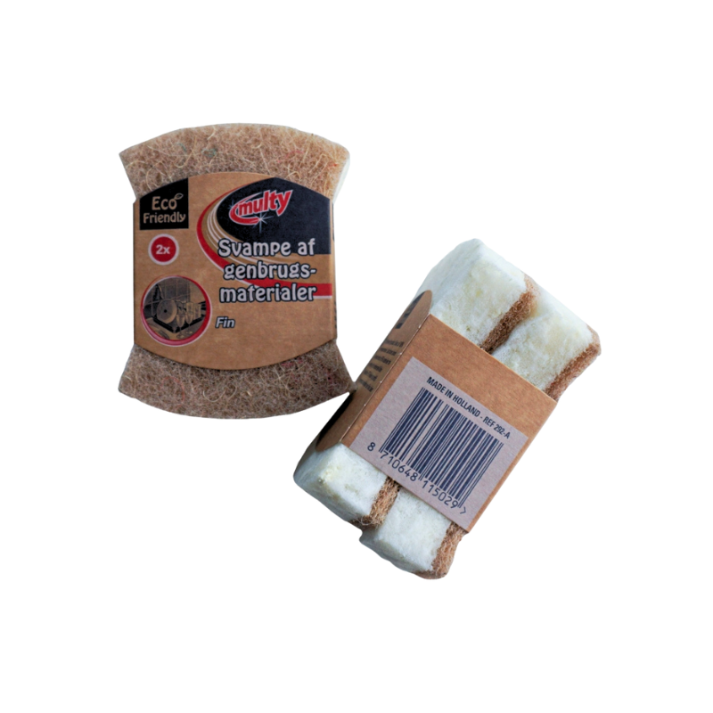 Eco køkkensvamp er designet til at levere effektiv og miljøvenlig rengøring i køkkenet. Svampen måler 10,5 x 8,5 x 2 cm og er lavet af genbrugsmaterialer - skumsiden består af 100% genbrugsmaterialer, mens skuresiden er lavet af 55% genbrugsmaterialer. Denne kombination gør svampen både bæredygtig og effektiv. Den kan bruges til opvask og generel rengøring i køkkenet og tåler maskinopvask, hvilket sikrer lang levetid og gentagen brug uden tab af rengøringseffektivitet. Perfekt til dem, der ønsker en grønnere løsning i deres daglige rengøringsrutiner.