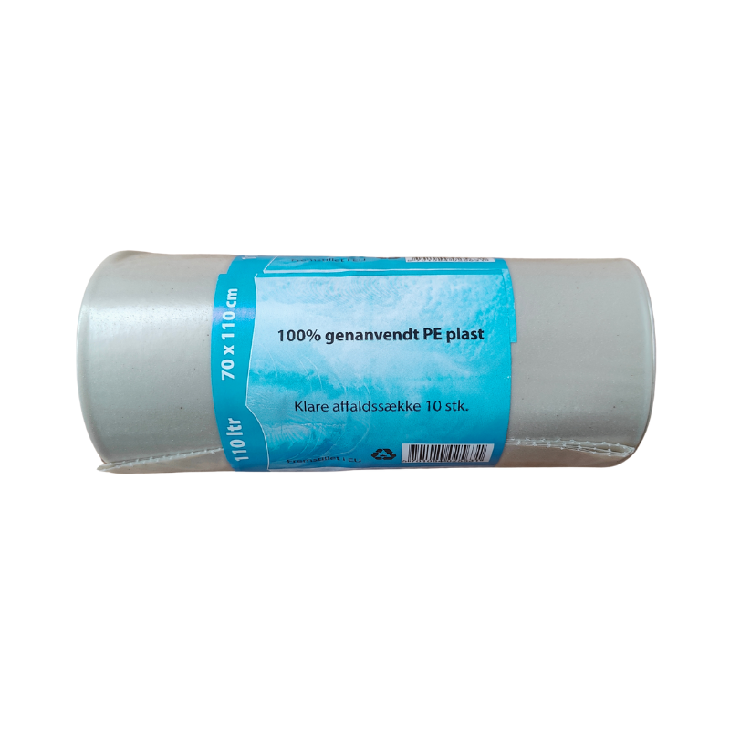 Klare sække, 1 rulle, 70x110 cm. 100 liter, 100% genbrugsplast