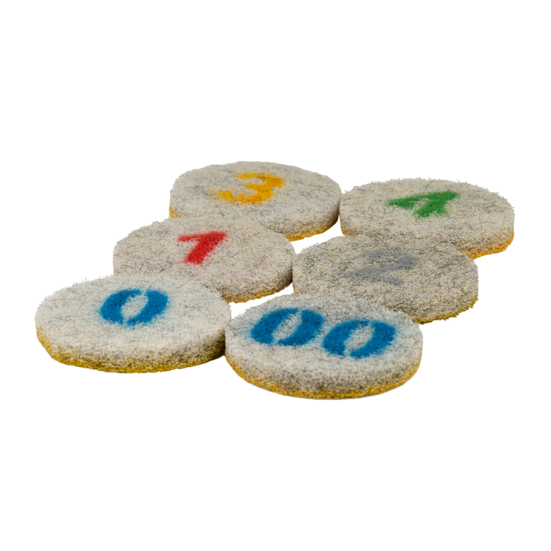 Grit 6. korn 10000. En fin rondel, som bruges ved vedligeholdelse af gulve.