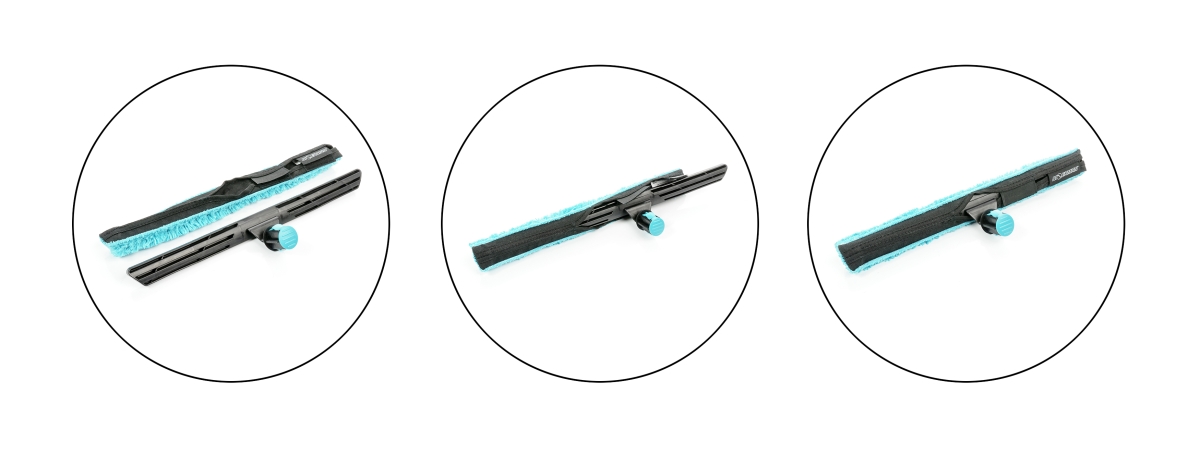 Kraftigt microfiberovertræk og Liquidator 3.0 skinne med NXT-R gummi. Kan klikkes på Moermans teleskopskafter.